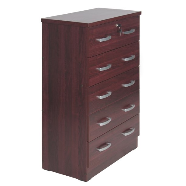 Better Home Products Cindy 5 Drawer Chest Wooden Dresser With Lock In Mahogany Walmart Com
